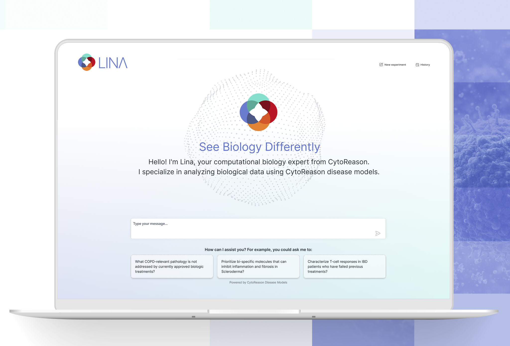 Built on CytoReason’s AI framework and trained on hundreds of drug-development questions used across the pharma industry, LINA delivers grounded analysis plans, generates validated and reproducible code, and provides clear biological explanations across genes, pathways, cell types, and patient subgroups. By anchoring every response to CytoReason’s mechanistic disease models, LINA avoids the hallucinations common in general-purpose language models.